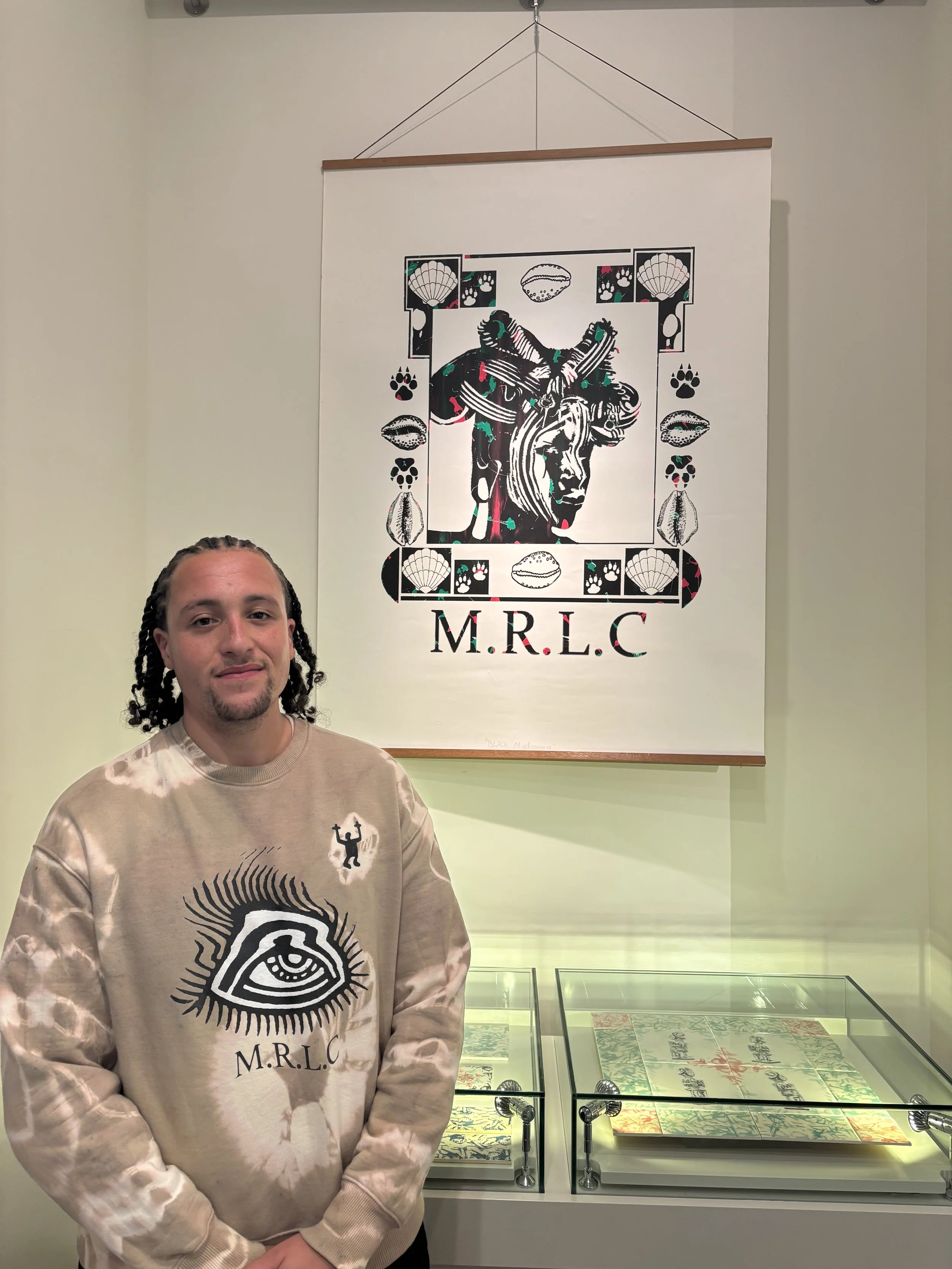 He also delivers workshops and talks with leading arts institutions, alongside running M.R.L.C, a clothing label rooted in his print-based practice.