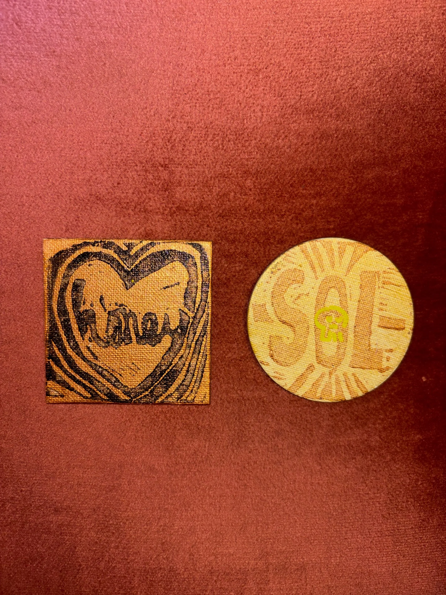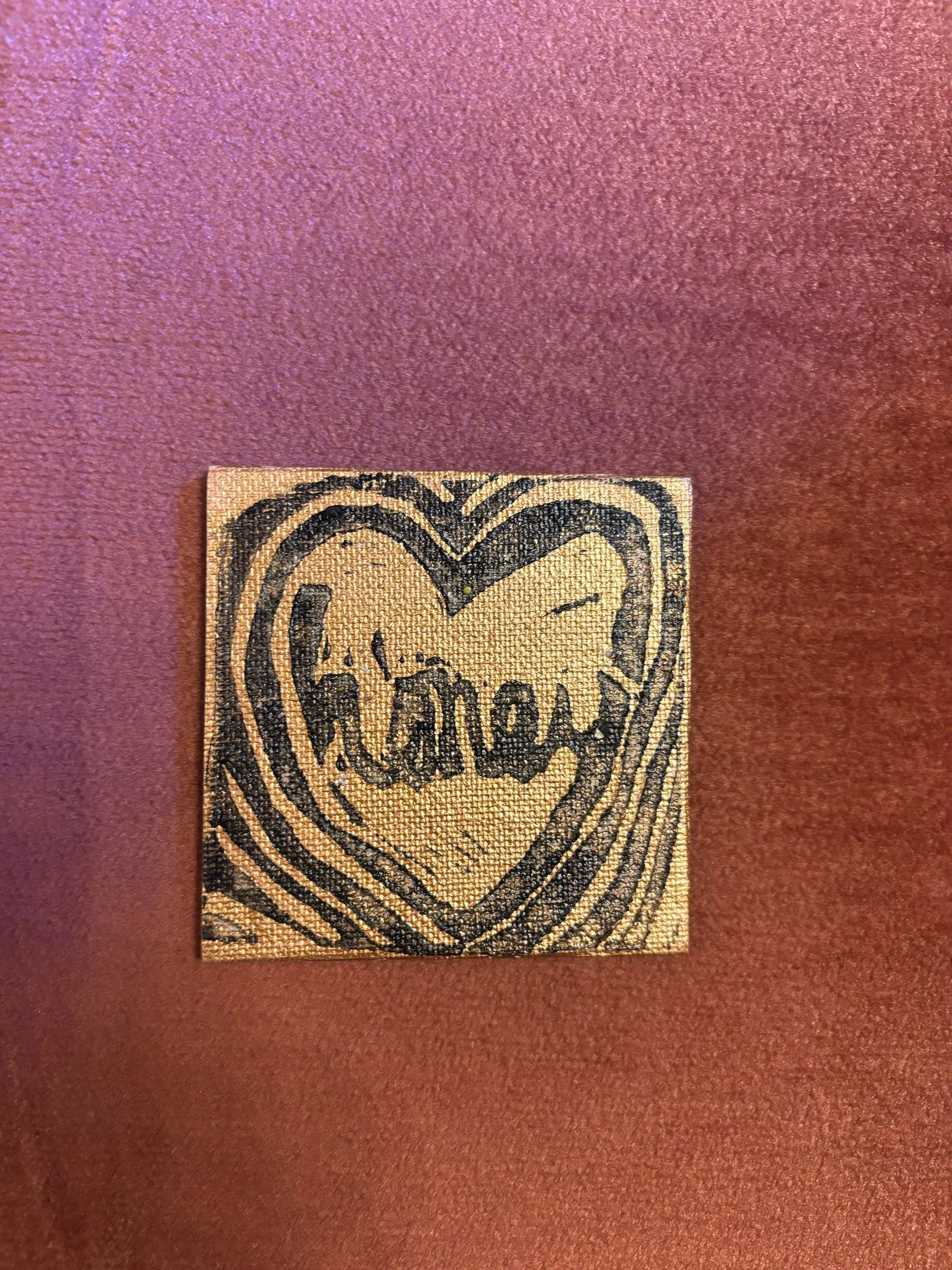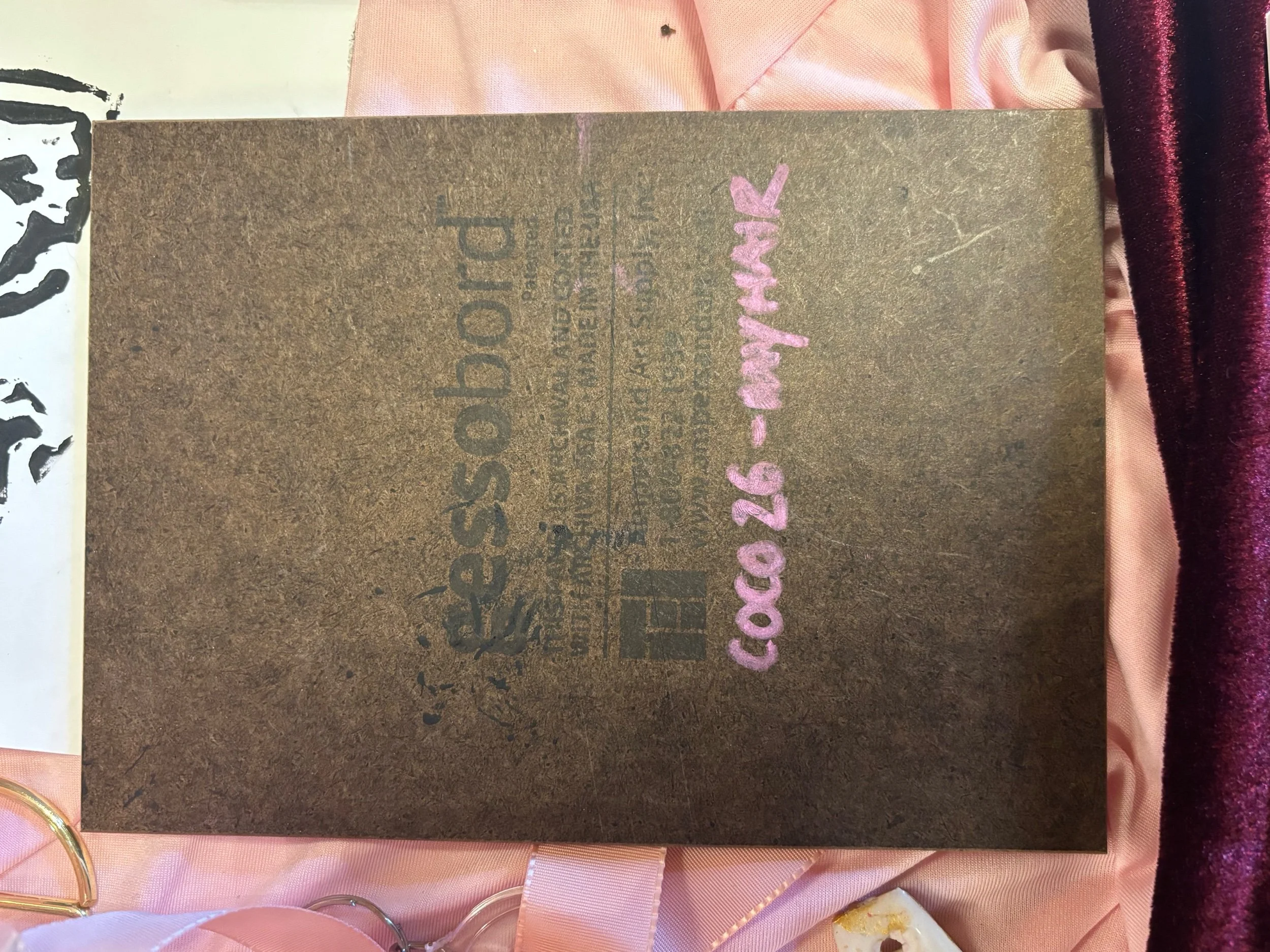 A5 painted piece with skull Lino print _ metallic black and neon pink