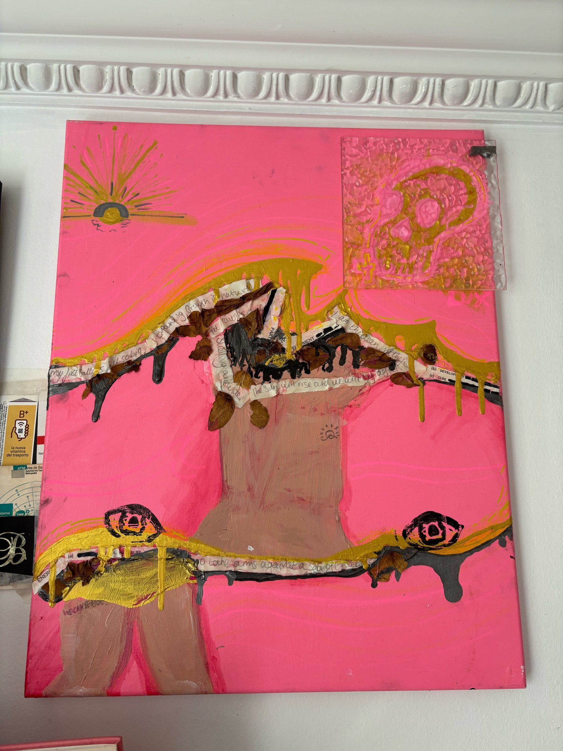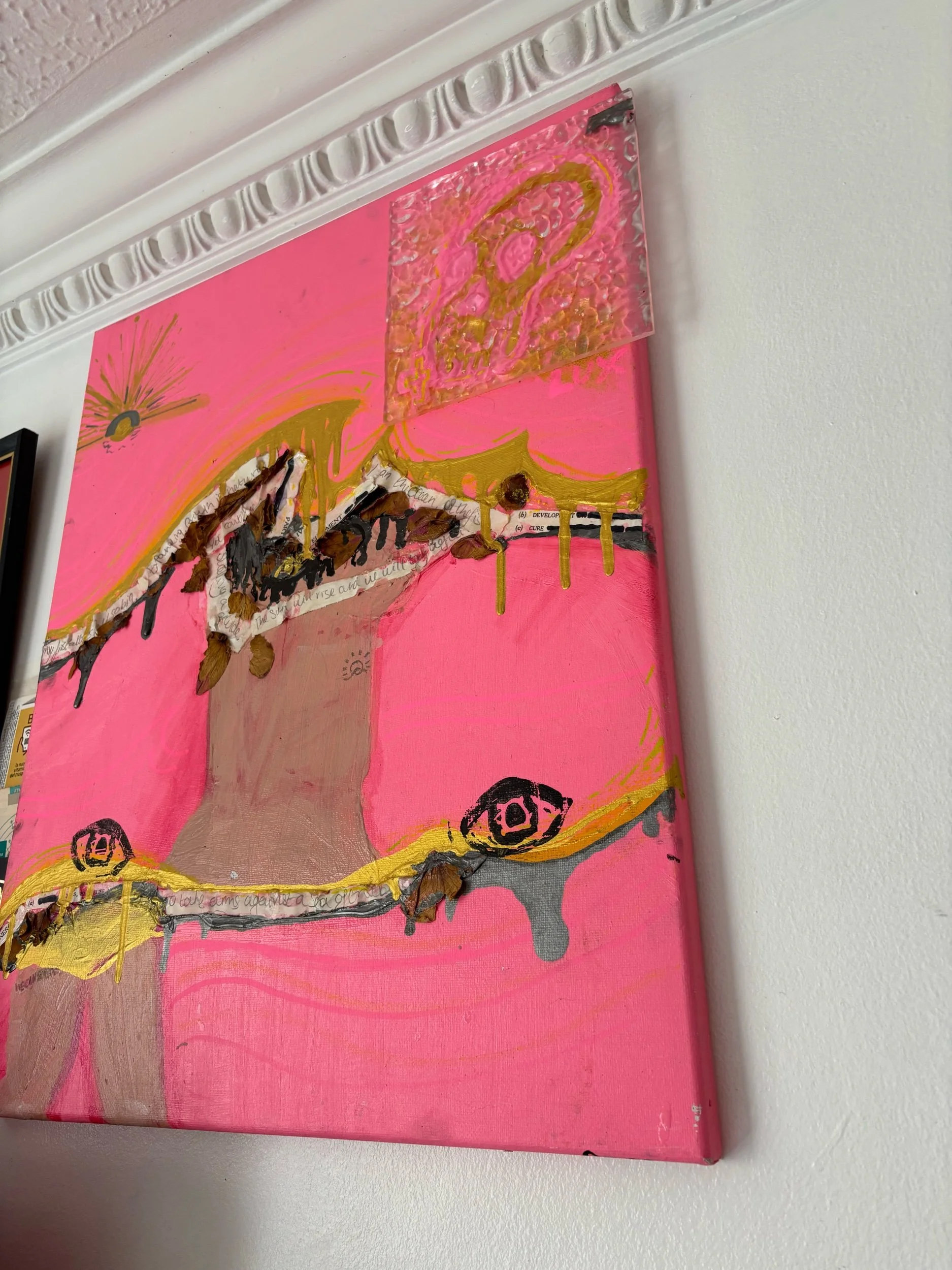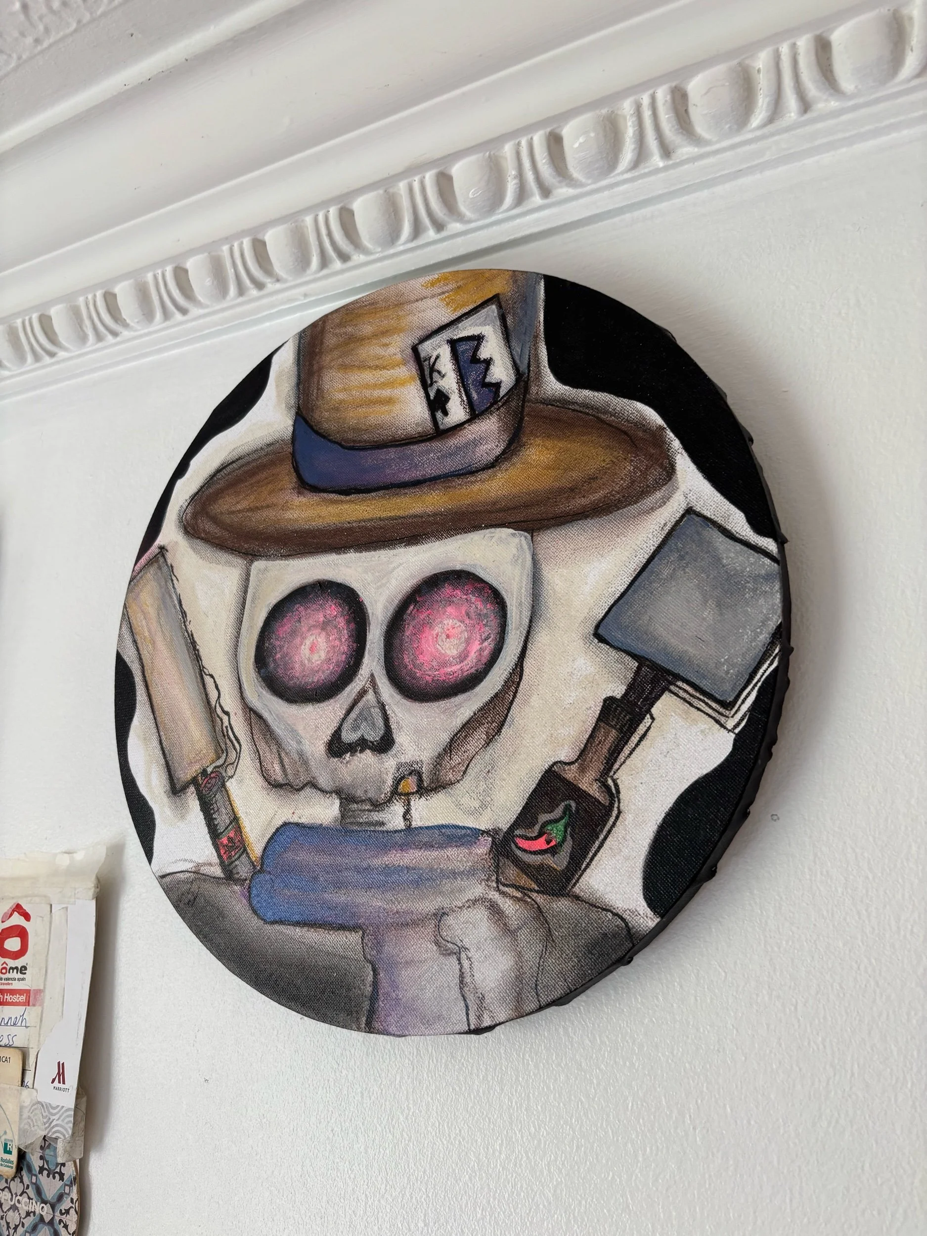 Paint and pastel on 30cm diameter canvas